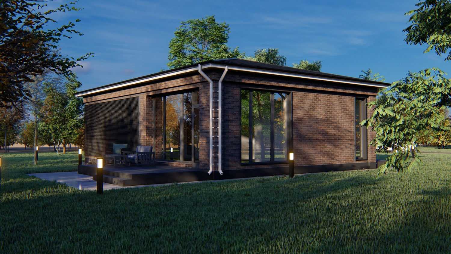 EQON A. Одноэтажный каменный дом с плоской или скатной крышей, площадью 70 м²